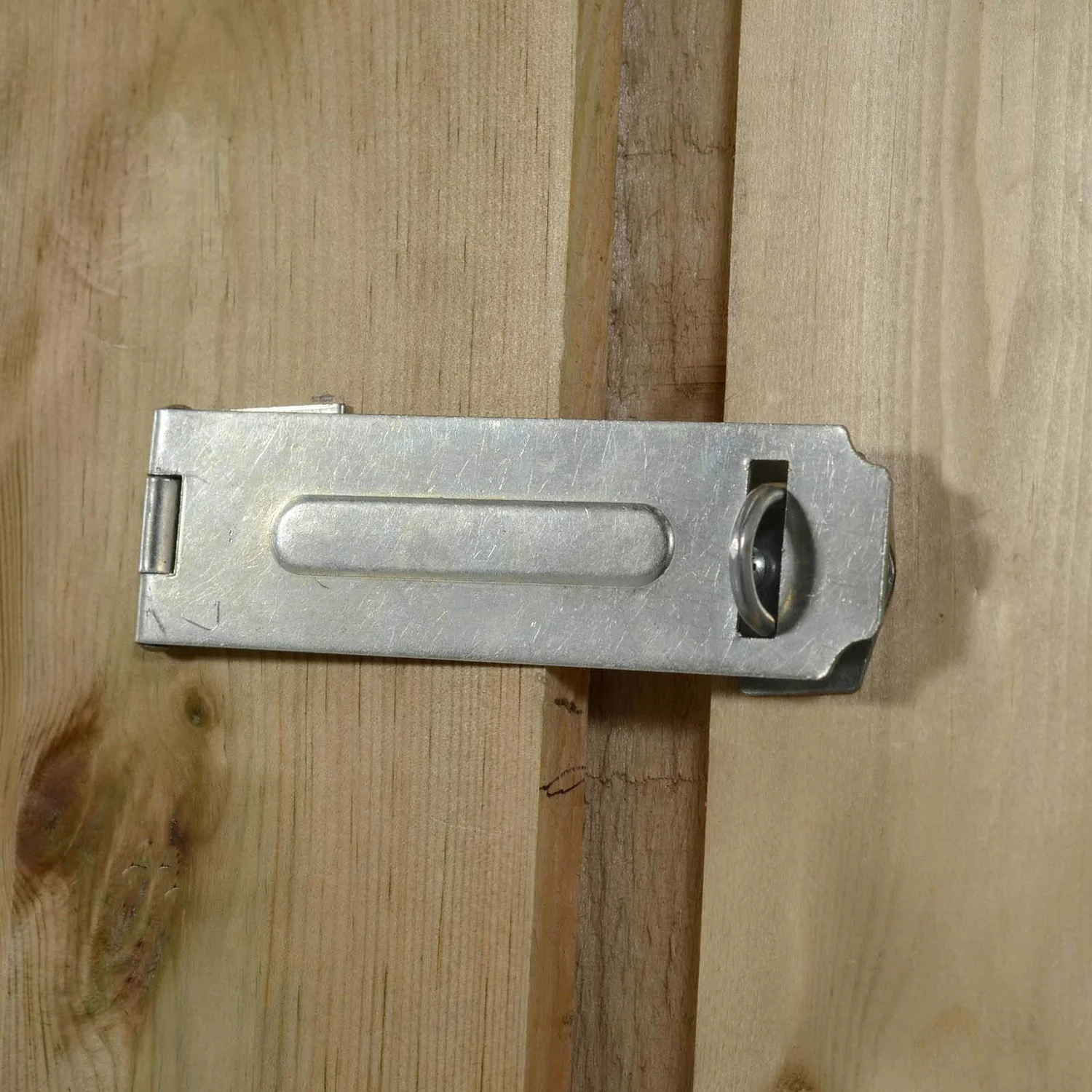 The strong braced double Z framed door can be hung either side of the door opening. The door also features hidden hinges and it can be secured with the hasp and staple latch for increased security. The roof is finished with attractive black sand felt.