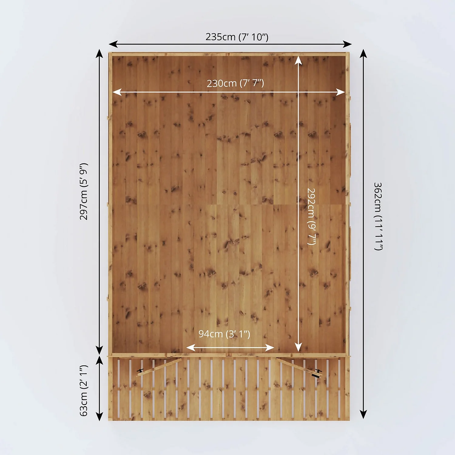 - Tongue & Groove Roof and Floor – Heavy duty interlocking boards create a premium, strong and robust finish