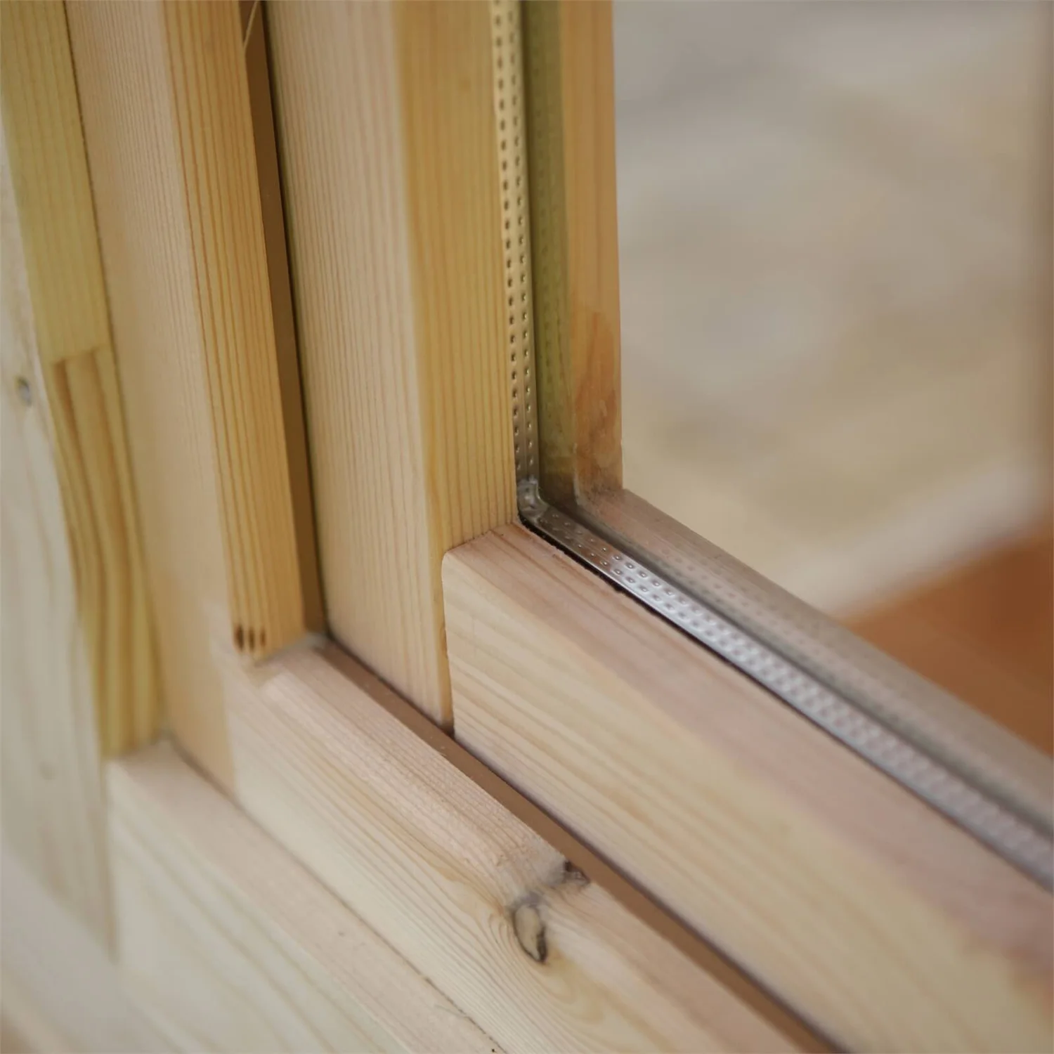 Forest Garden’s Mendip log cabin is a mid-large size with a footprint 5m wide x 4m deep. It’s modern and unfussy pent roof design is complemented by a high specification which includes 45mm thick interlocking log walls, 19mm tongue and groove floor and roof, double glazed double doors, two tilt and turn double glazed windows to the front and a 3/4 length double glazed tilt and turn side window that can be positioned in the left or right wall. All windows are double glazed with toughened glass.