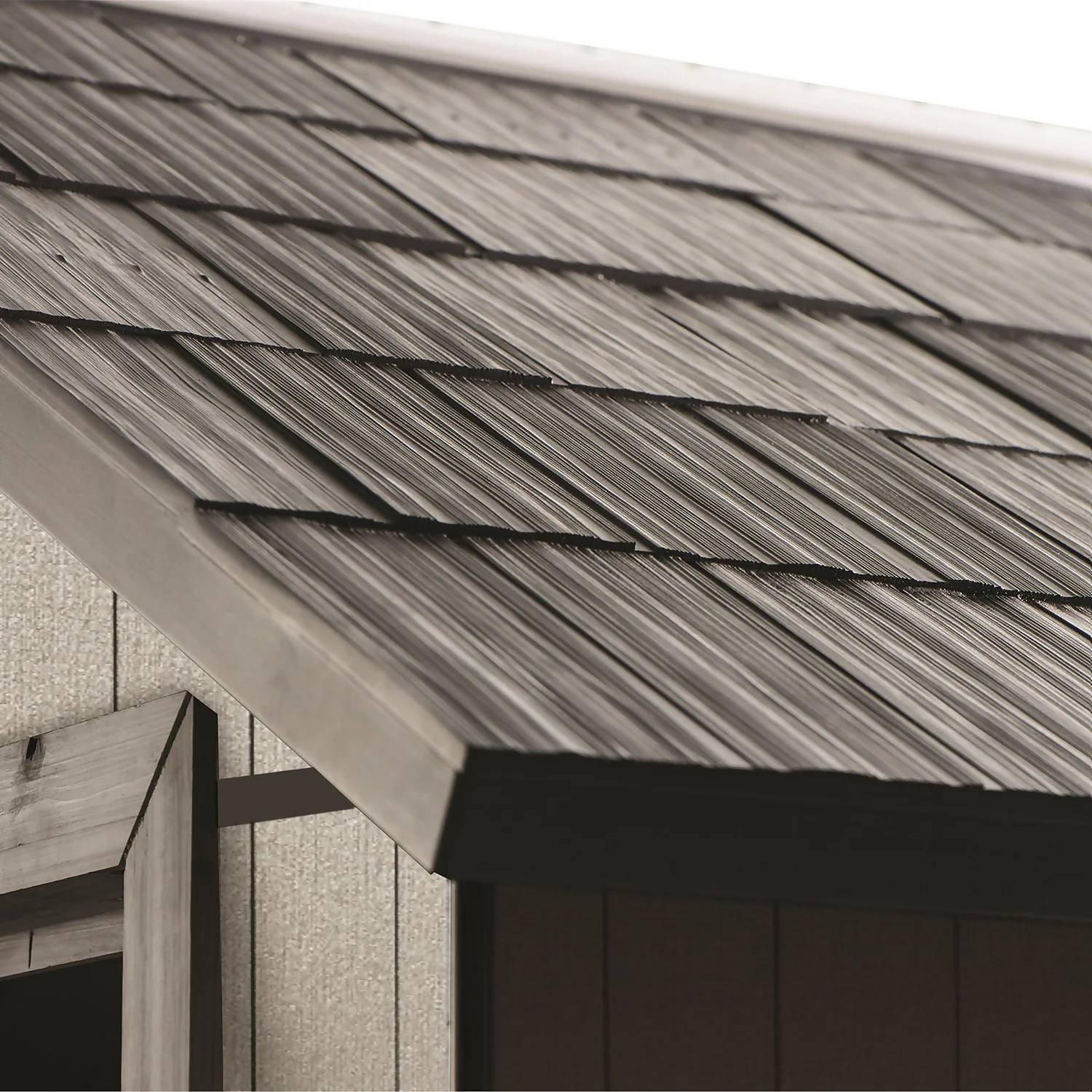 - Elegant and innovative wood effect exterior with paintable walls and pre-cut tongue and groove panels for easy assembly