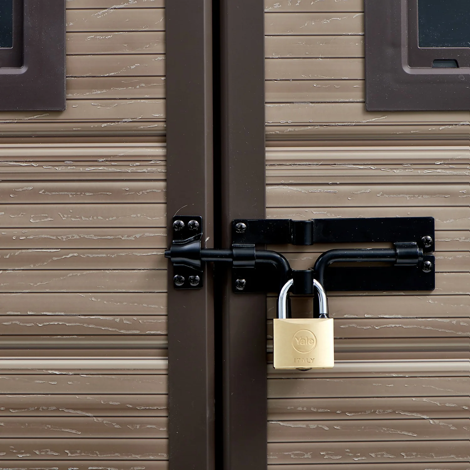 - Floor panel with integral window for natural lighting and padlock hasp for optional added security (lock not included)