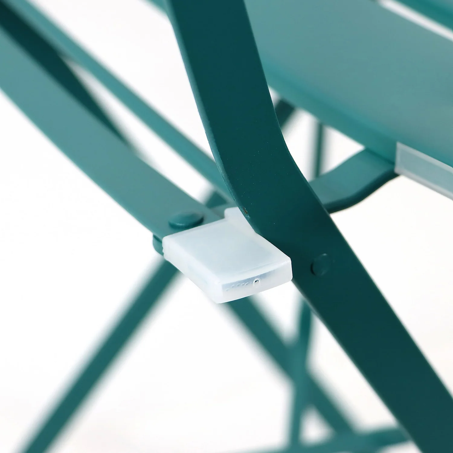 The green Millie metal bistro set, includes two folding chairs and one folding table – perfect for enjoying drinks or meals in your garden at any time of the day. The 3 piece patio set with small patio table and folding chairs would also be perfect for balconies. The lightweight design makes it easy to move around as desired, you could even move it indoors if needed.