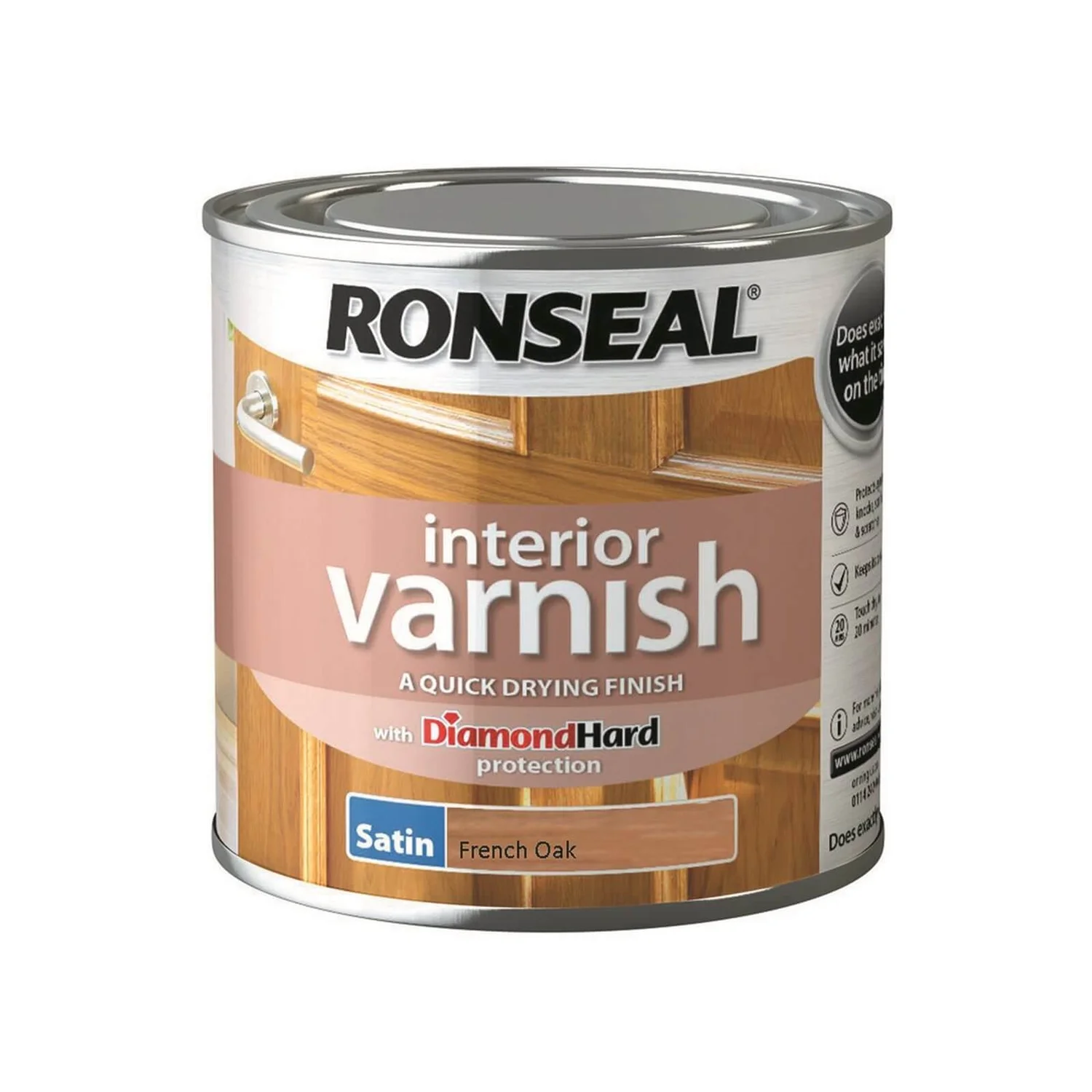 Ronseal Interior Varnish Satin gives great protection against knocks, scuffs and scratches. It gives richer colour and comes in gloss, satin or matt.