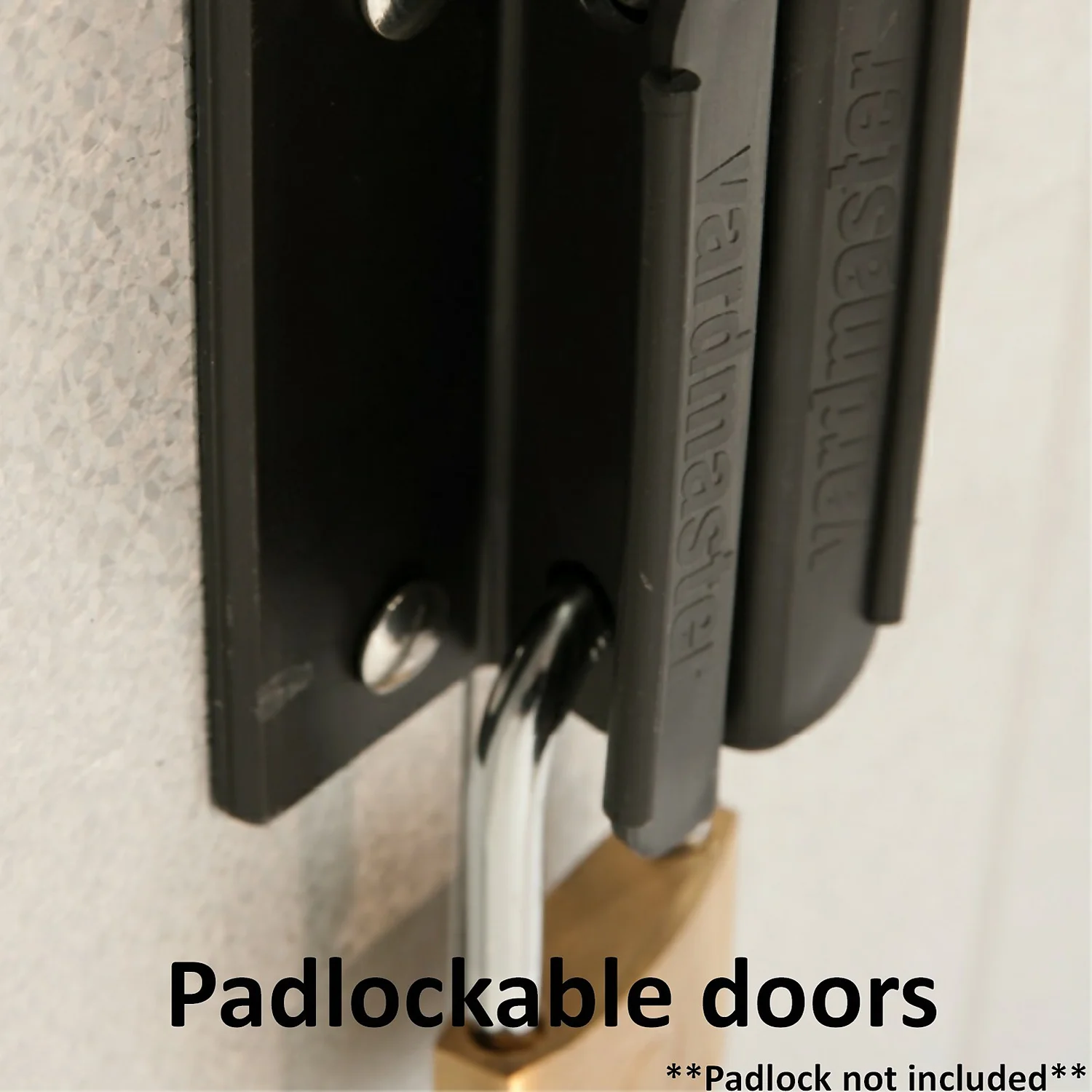 Handy steel storage unit for garden items. Includes superior hot dipped galvanising treatment – no maintenance ever required. Stylish pent roofed design will suit any outdoor space.